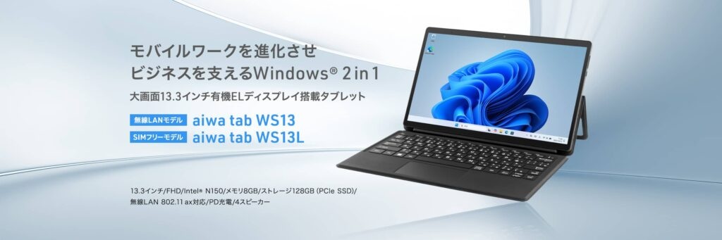 【aiwa tab WS13/WS13L】が本日12月18日から「ダイワボウ情報システム」、「TD SYNNEX」にて法人向け限定モデルとして